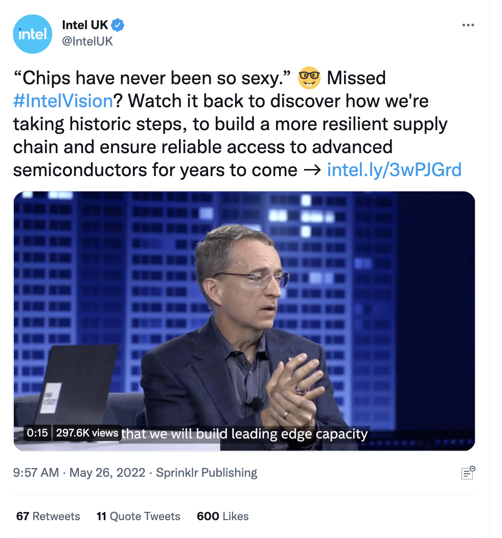 Intel UK consolidates all business units of the technology giant, from B2B on the Intel vPro platform, to gaming. As Community Management lead for Intel UK, I have led community activations, planned organic social content calendars, and kept the conversation going through regular engagement with our followers.